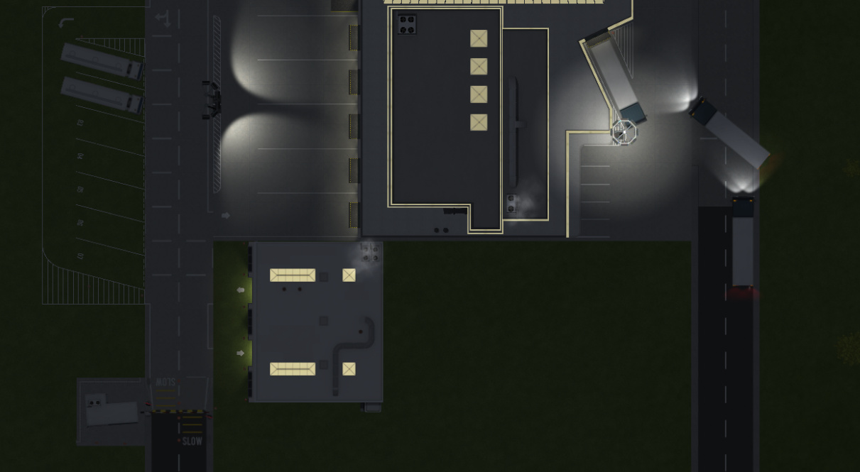 Hmm, I see the new parking lot texture, very nice. Actuall, how large is the catering depot at the moment, I understand that it may change later.