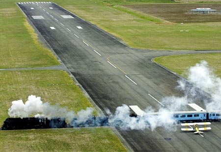 Yep XD, Quite and interesting sight seeing aircraft give way to trains!!!